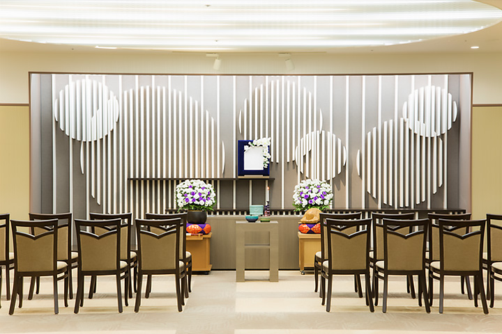 家族葬専用に小式場をご利用頂けます。社葬や多くの弔問がある場合は、間仕切りを外し大式場としてご利用いただけます。その際の会席室は別フロアとなります。 -