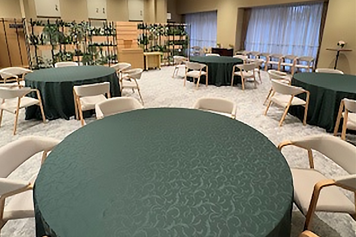 家族葬専用や法要など多目的にご利用頂けます。他の会場とは違い、無宗教葬など食事をしながら式を行える多様性のある式場です。 -